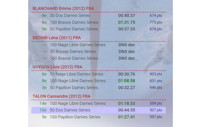 Voici les résultats de ce dimanche 29 mars à la Roche sur Yon pour nos nageurs du CNF "rencontre Avenirs" et "Vendée Tour". De bonnes performances pour nos nageurs avec parfois des podiums 100% CNF. Bravo à tous pour votre participation et merci aux...